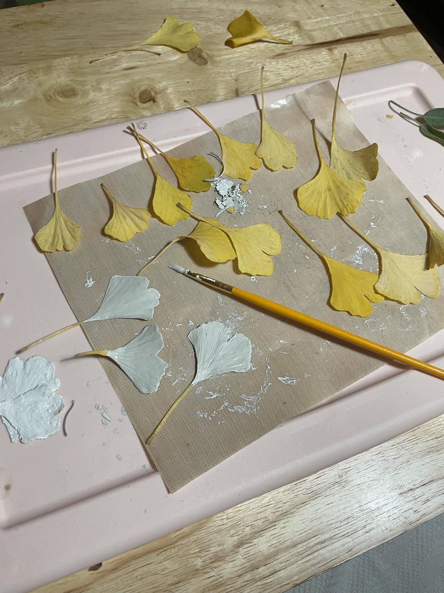 I am relatively new to silver clay but love working with it to create intricate leaves and other settings. It captures each little crevice in these gingko leaves that I collected.